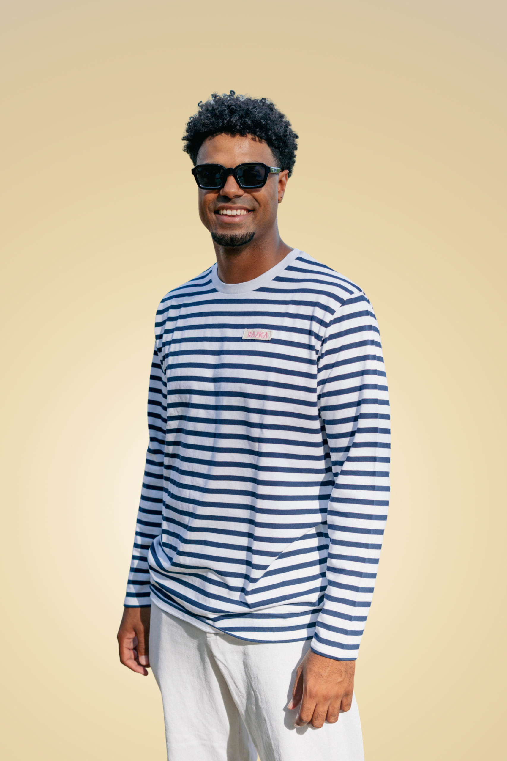 Une marinière à manches longues, coupée comme il faut, avec le logo RAZKA sur-brodé côté cœur.